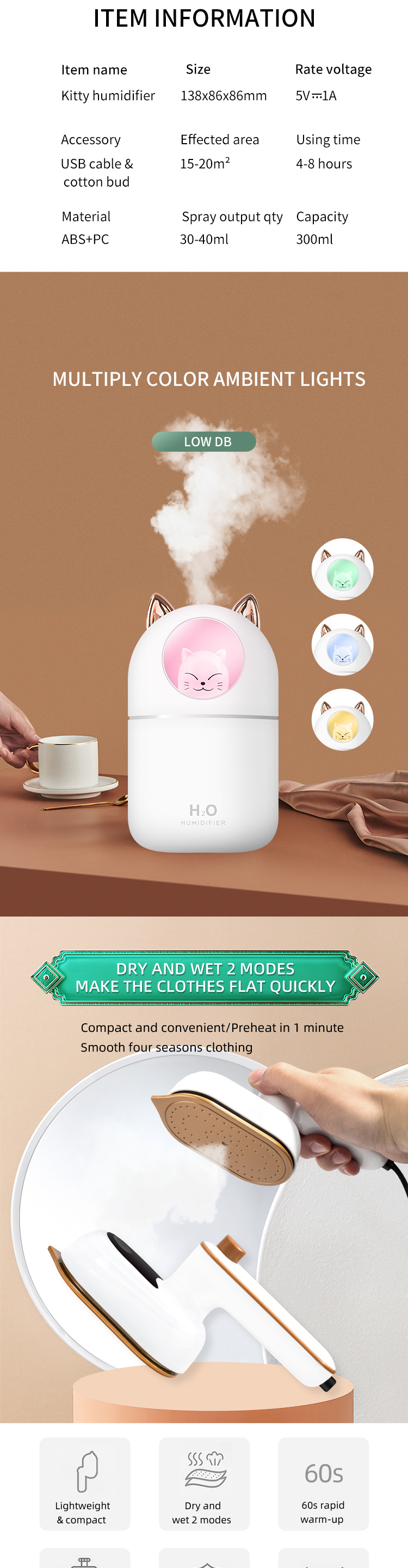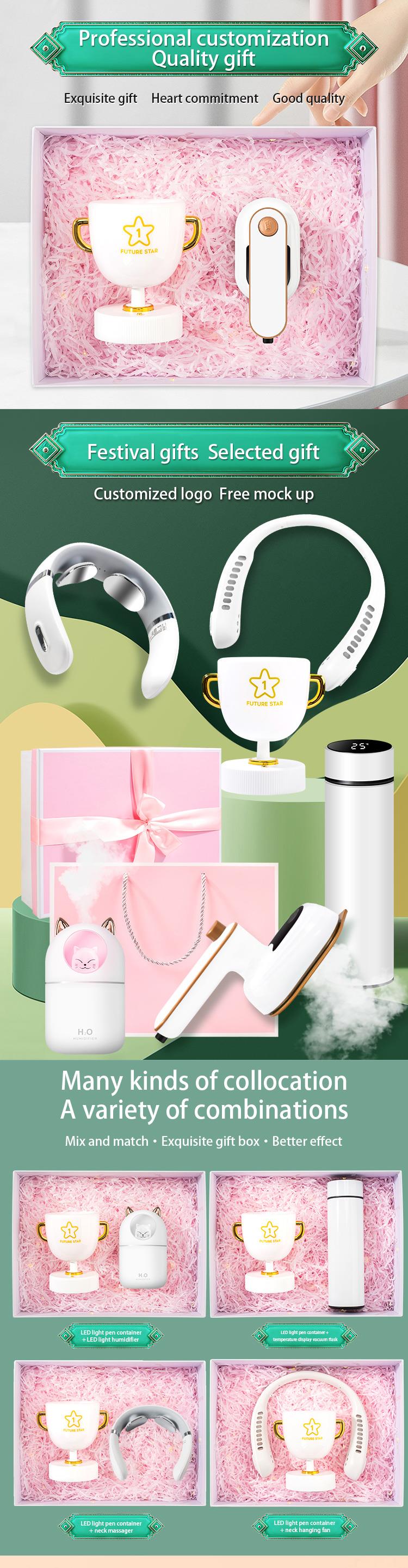 Clothes steamer:12.8*6.2*8.4cm, dry and wet ironing, 170℃ constant temperature, voltage:220V, 50Hz. Power supply: Plug-in use.Trophy Night Light Pen Holder: