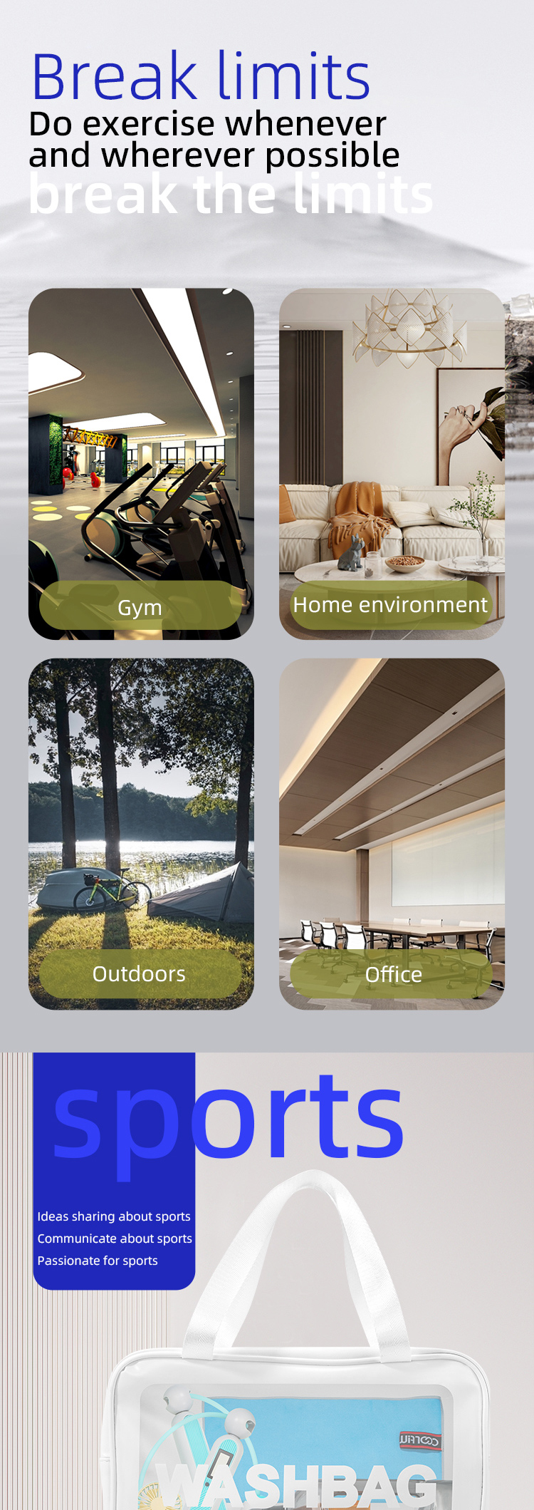 Sports cup:Gray, With a straw and handle, PC+PP, 1500ML, 240*126mm, One button to open Mini fan:Blue, ABS material, 3 wind speeds, 64*35*133mm, with light indicator Wash bag:White bag with handle,215*300*110mm, PVC+PU leather+nylon, with zipper Color:As picture