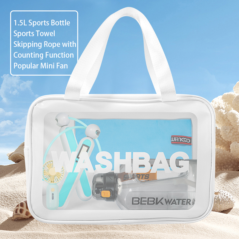 Sports wash bag with Quick-dry towel+Skip Rope+Sports cup+Mini fan