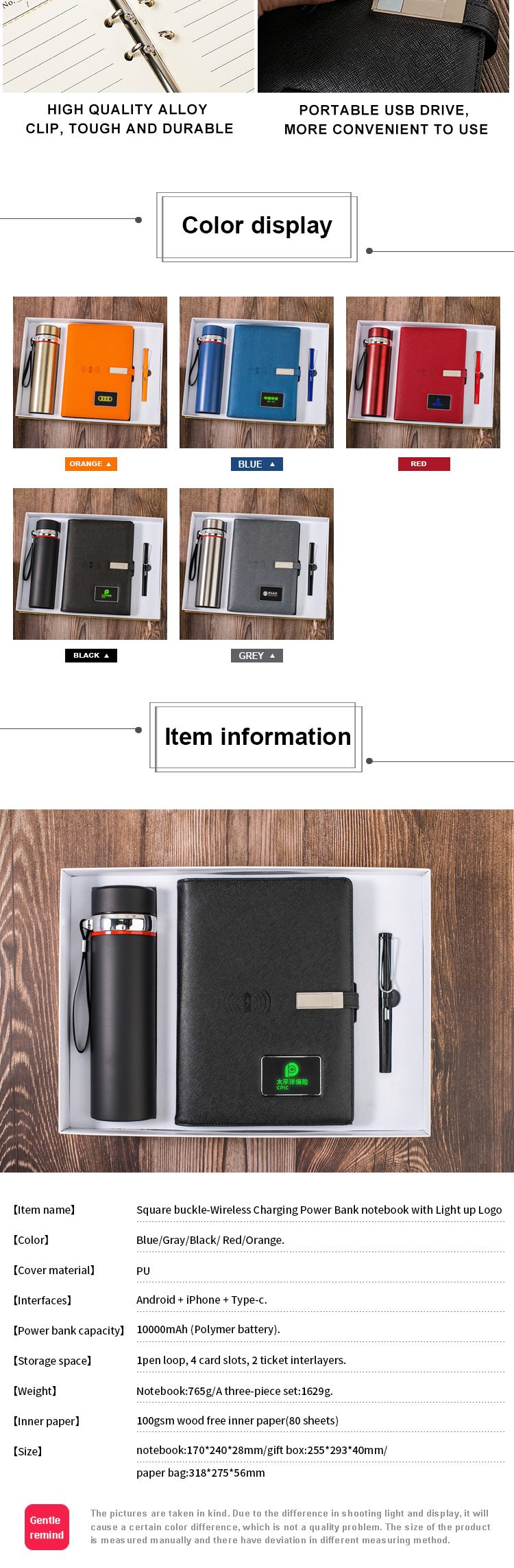 Luminous Set Customized Business Gifts Festival Gifts Charging interface+Power bank capacity+Inner paper+USB flash drive+Pen