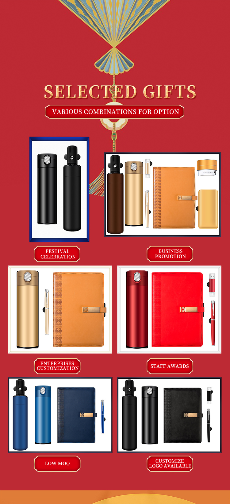 umbrella+vaccum cup+notebook+USB flash drive+pen