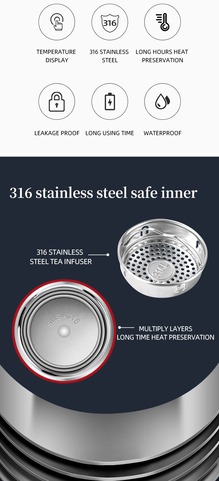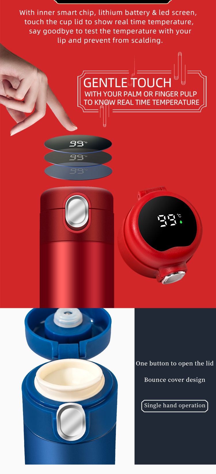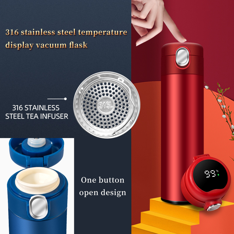 One button to open, 316 stainless steel liner, 500ml, temperature display