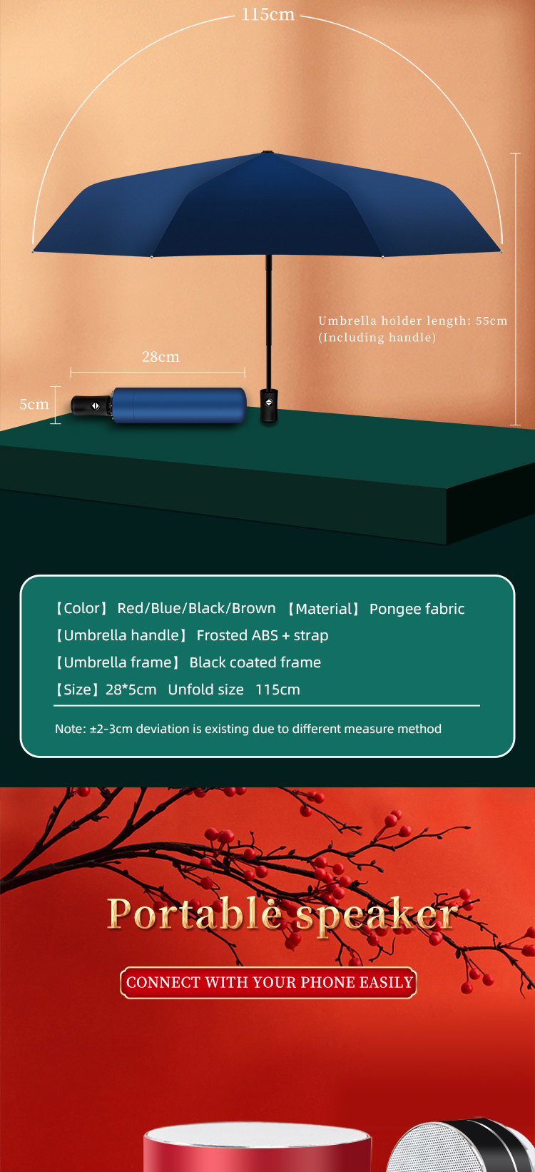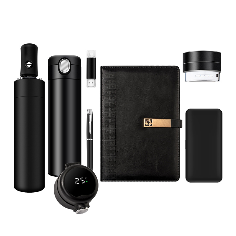 umbrella+vacuum cup+USB flash drive+pen+notebook+speaker+power bank