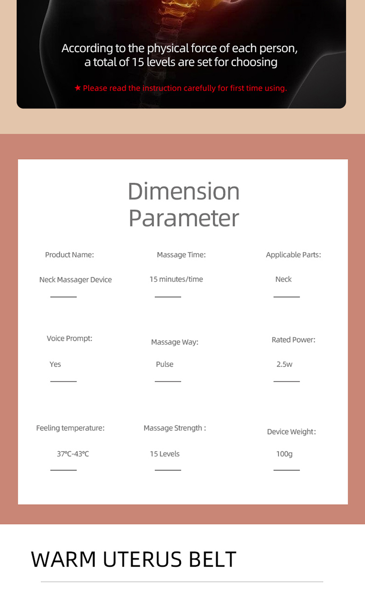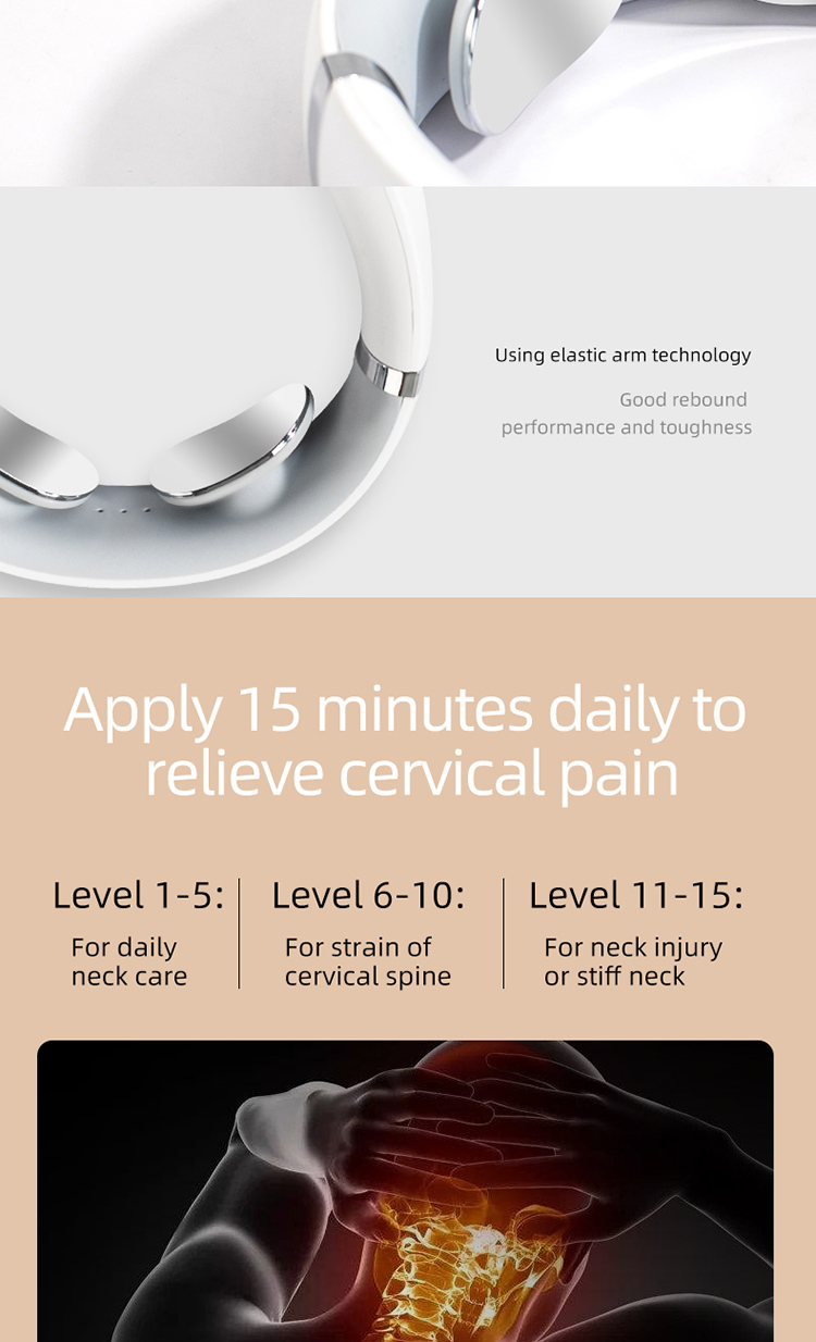 Neck massage4 massage modes & 15 levels, low pulse, constant temperature hot compress, 2.5W, 150*145*45mm