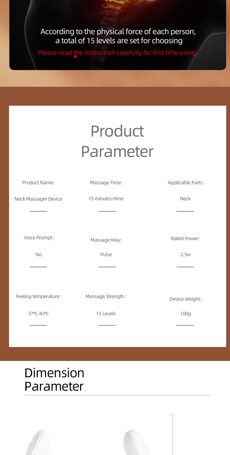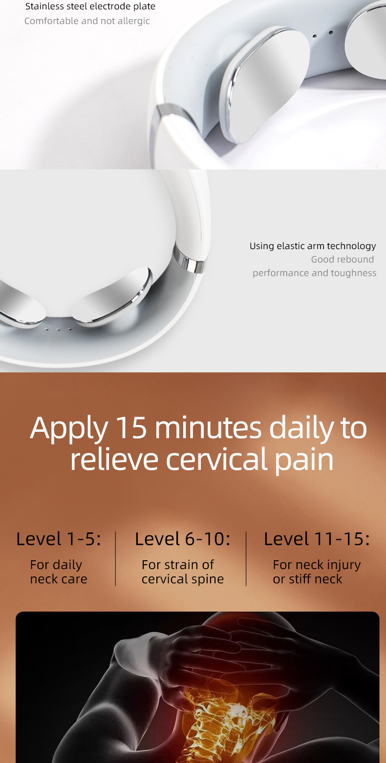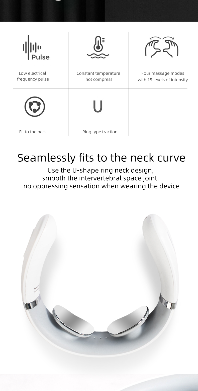 Neck massage4 massage modes & 15 levels, low pulse, constant temperature hot compress, 2.5W, 150*145*45mm
