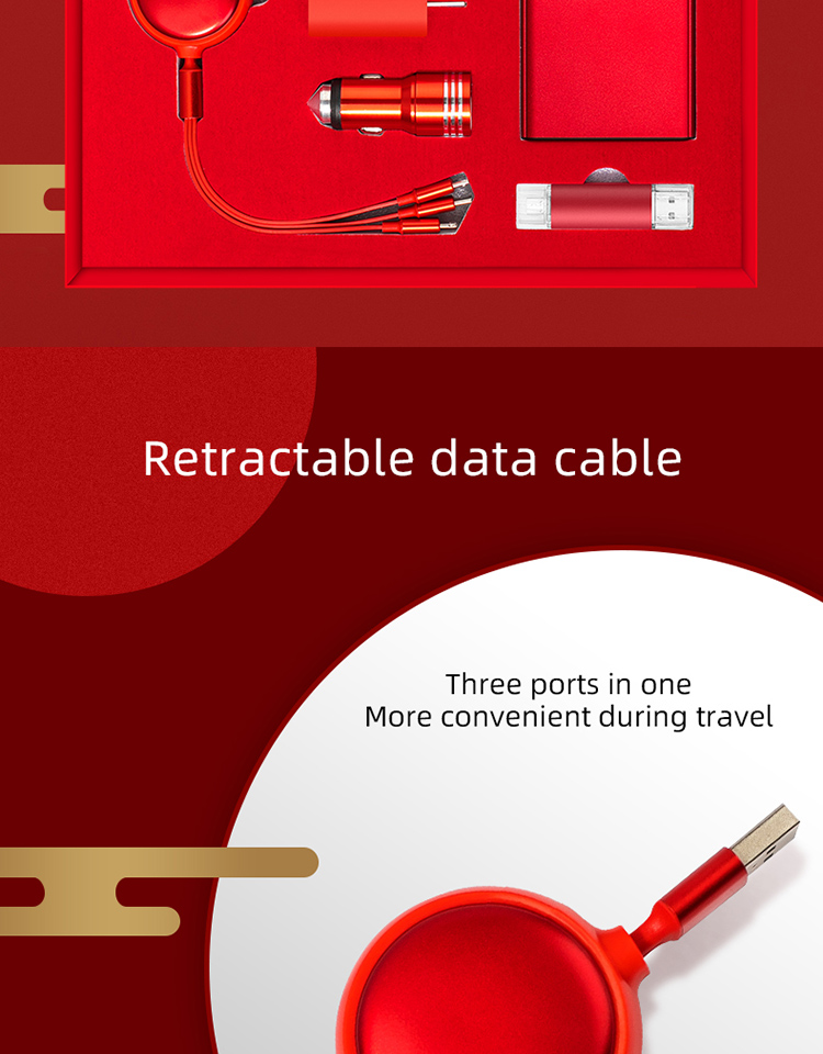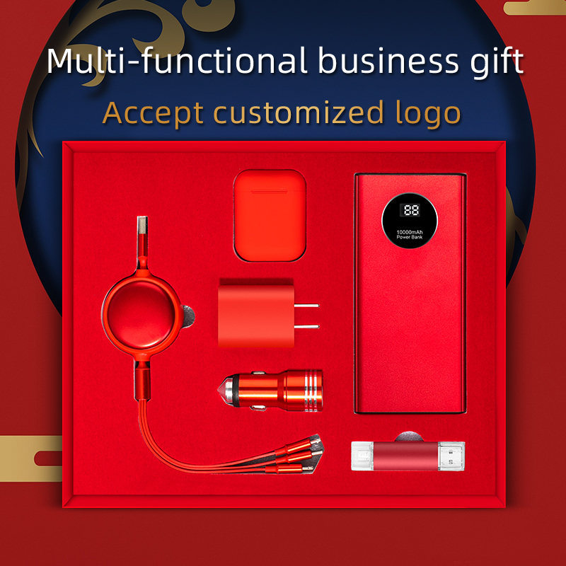 USB cable + wireless earbuds + plug + car charger + usb flash drive  + power bank gift set