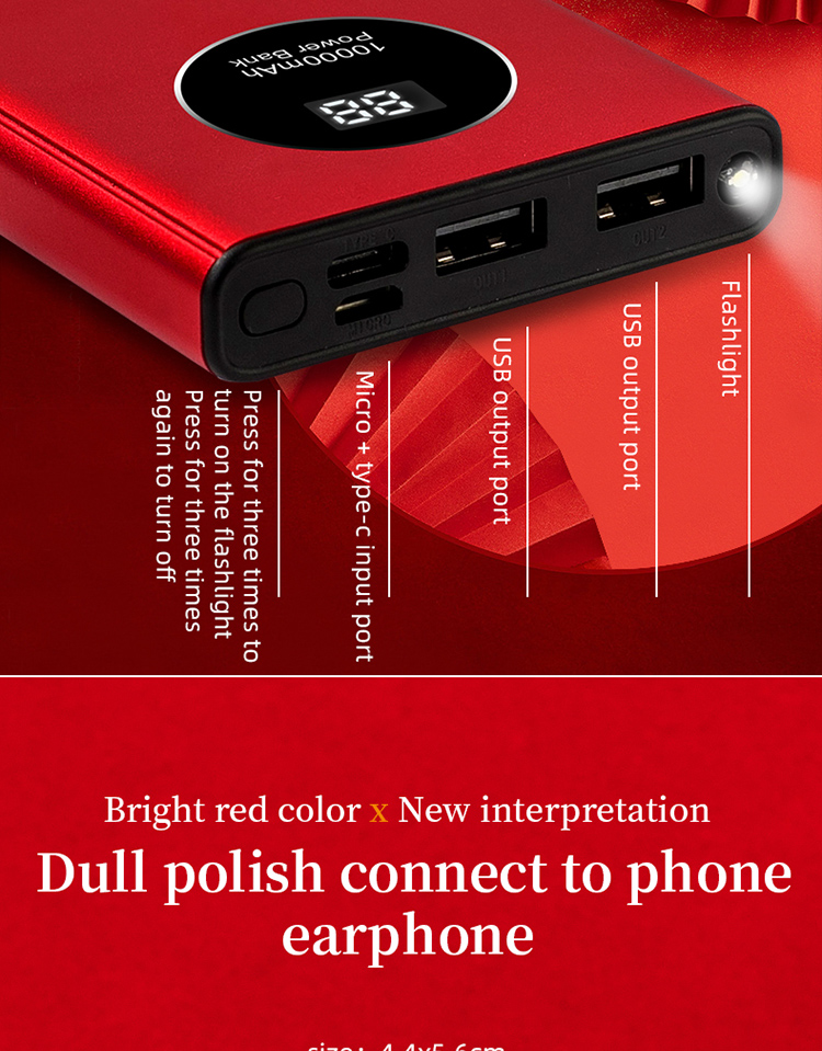 Power bank10000mAh, 2 usb outputs, micro USB & Type-C inputs, with flashlight, screen indication