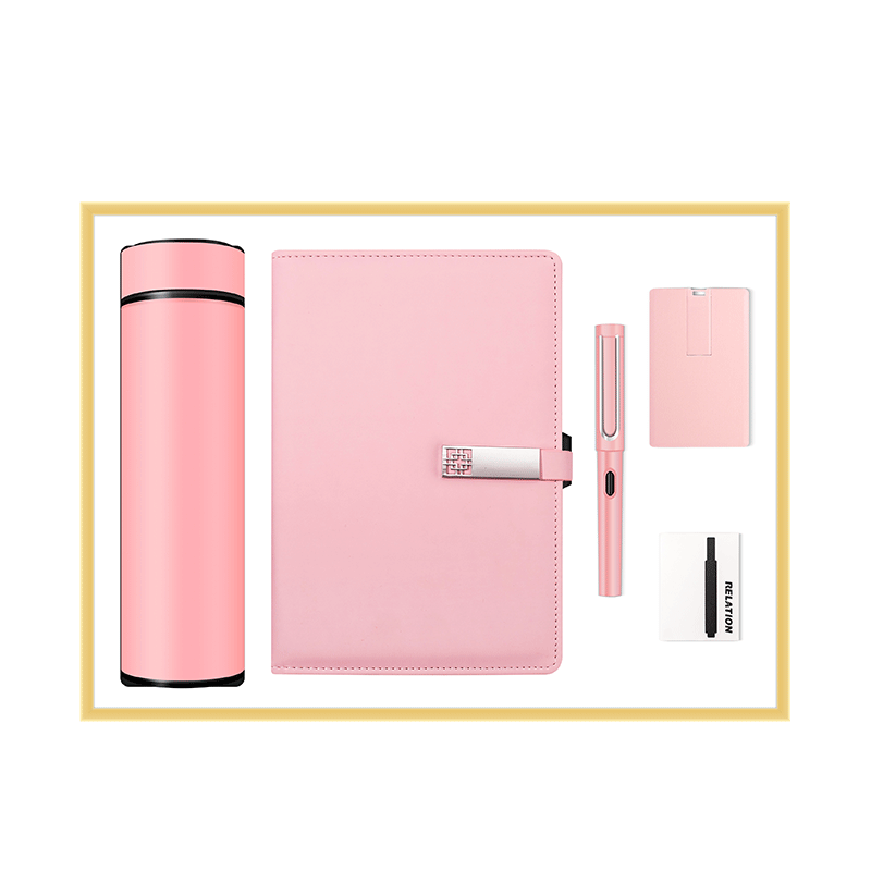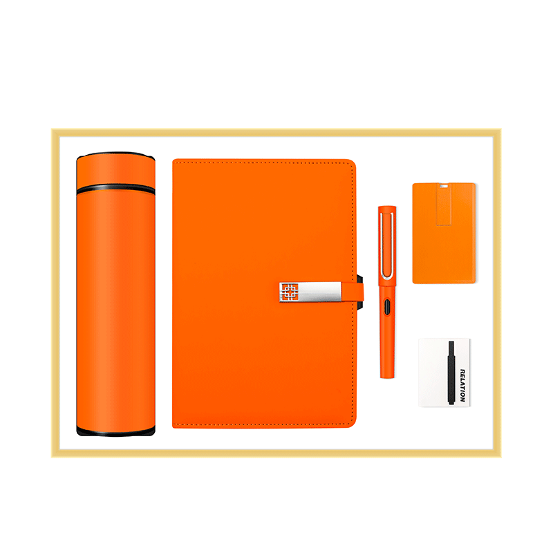 :Flask + A5 notebook + fountain pen + usb + ink refill gift set cooperate gift set