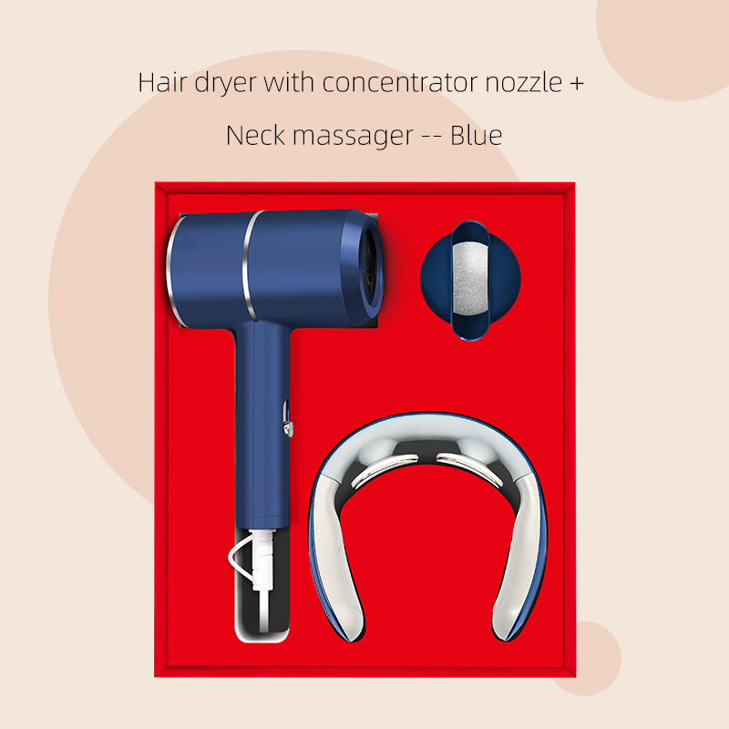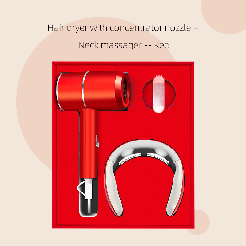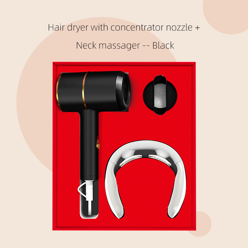 Hair dryer with concentrator nozzle + neck massager (For neck massager, English voice prompt version MOQ is 1000 sets, small quantity is with Chinese voice prompt or white color without voice prompt)