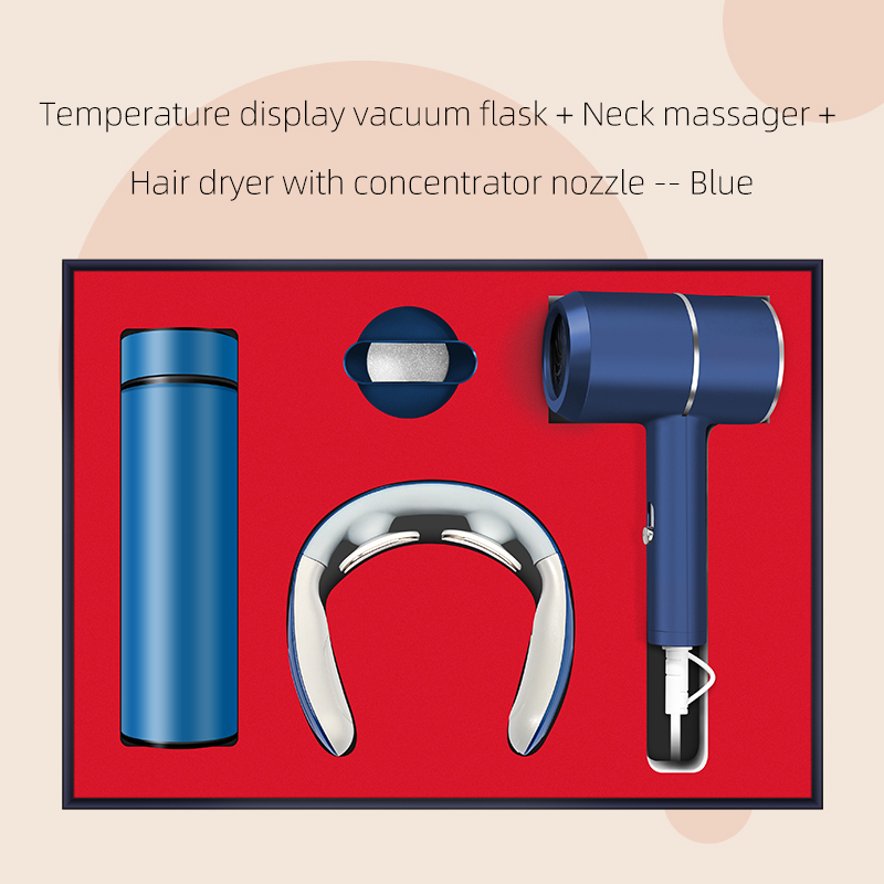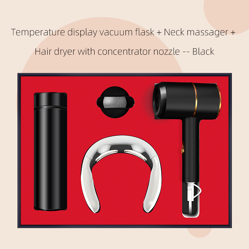 Hair dryer with concentrator nozzle + neck massager + vacuum flask (For neck massager, English voice prompt version MOQ is 1000 sets, small quantity is with Chinese voice prompt or white color without voice prompt)