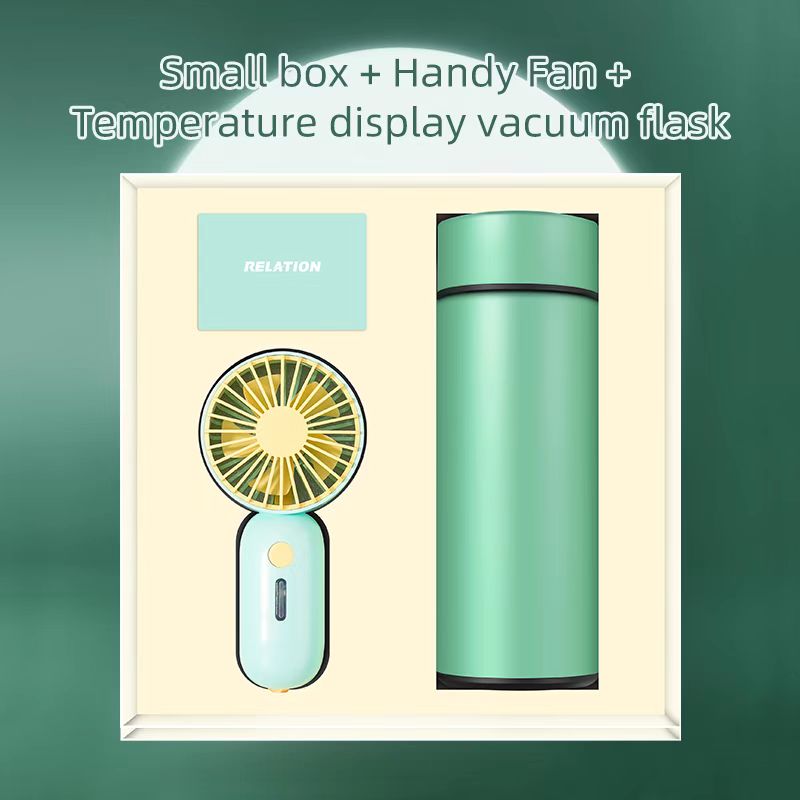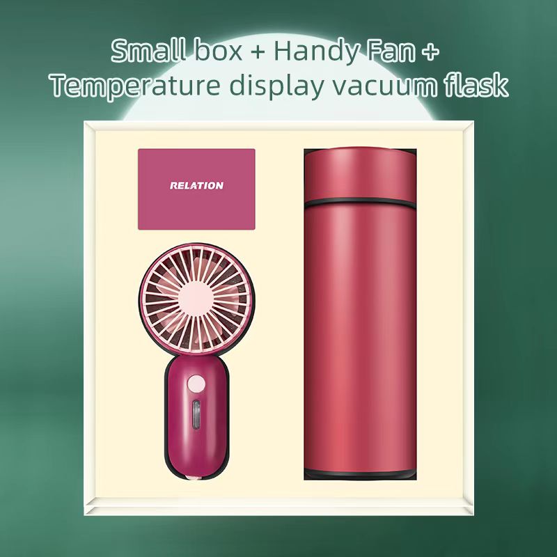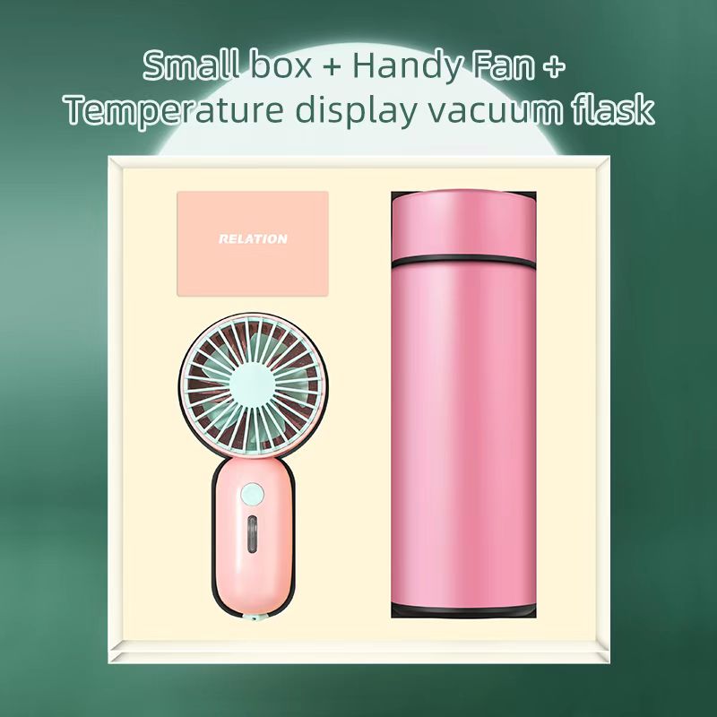vacuum flask:350ml, 304 stainless steel liner, 18.5*6.5cm, temperature display Fan:ABS material, 3 wind speeds, 64*35*133mm Fan cable:micro usb cable for fan, with small box package Color:Pink, red, blue, light green