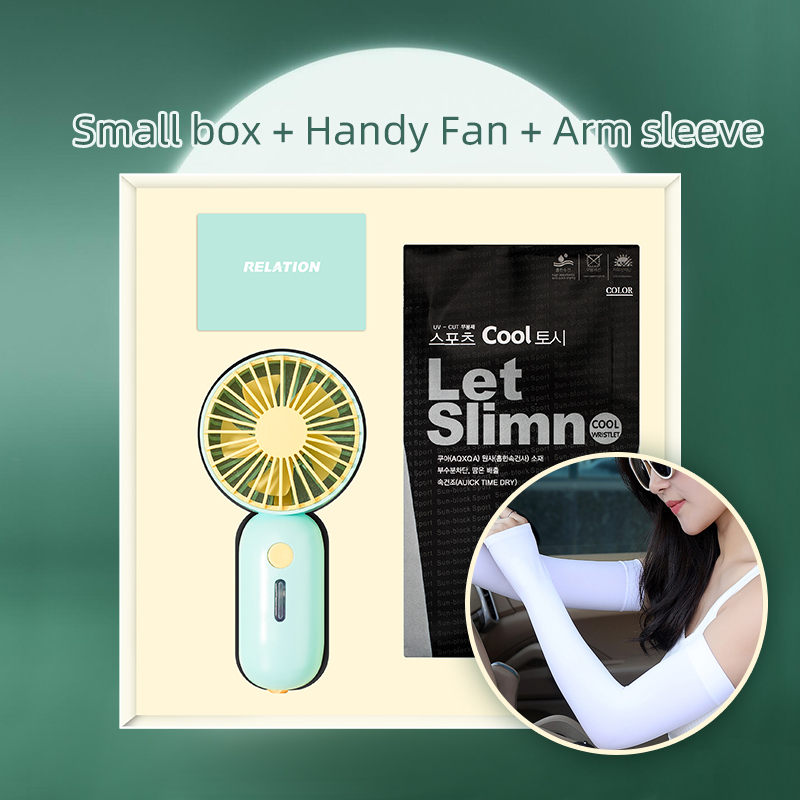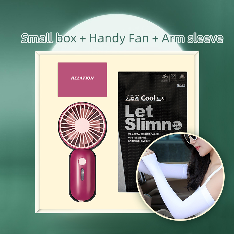 Cool arm sleeve:Ice silk, white, free size, sleeve length: 34cm Fan:ABS material, 3 wind speeds, 64*35*133mm, with light indicator Fan cable:micro usb cable for fan, with small box package Color:Pink, red, blue, light green