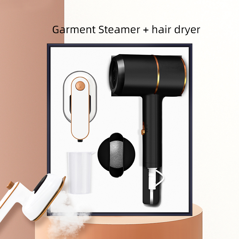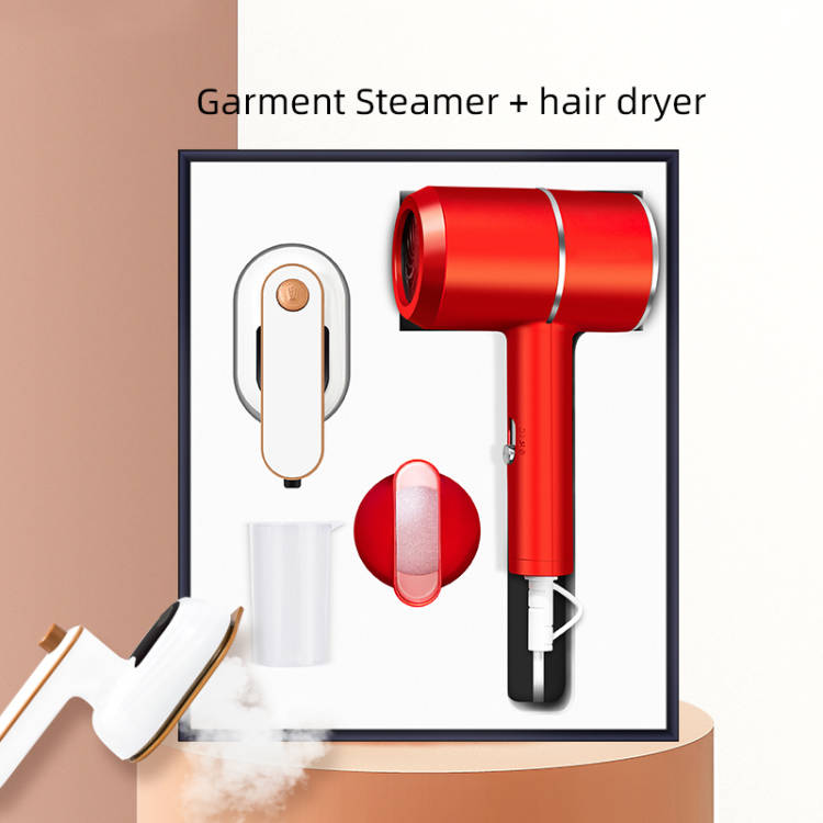 Clothes steamer:12.8*6.2*8.4cm, dry and wet ironing, 170℃ constant temperature, voltage:220V, 50Hz. Power supply: Plug-in use. Hair dryer:23*12*7cm, strong / soft / cold wind switch, 50HZ, 220V, 1000W, 1.8m power cordColor:Black, red, blue
